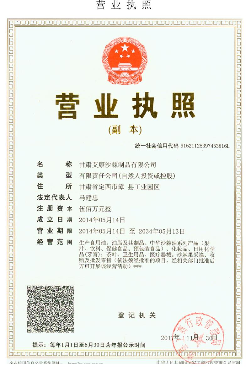 公司名稱(chēng): 甘肅艾康沙棘制品有限公司